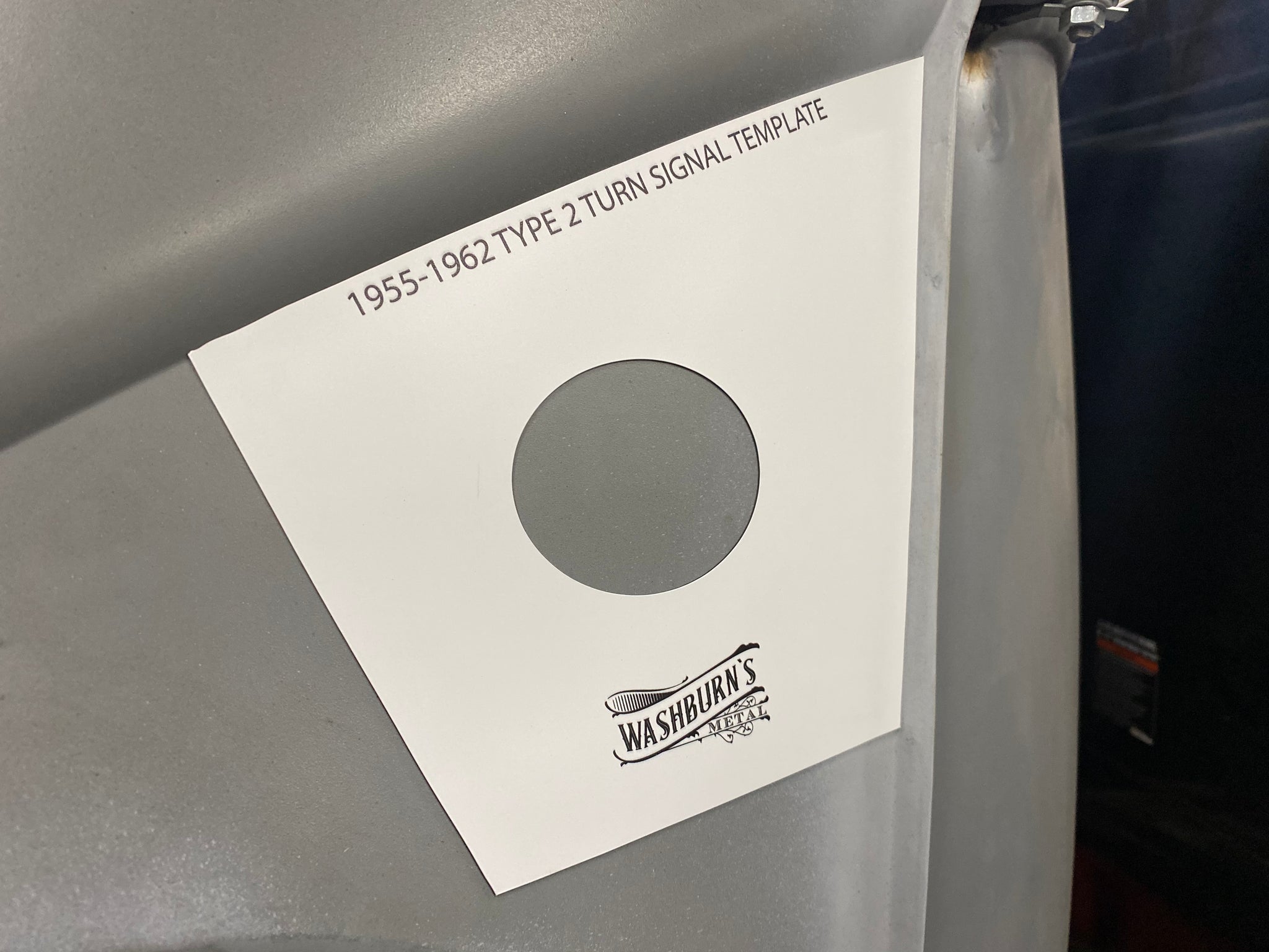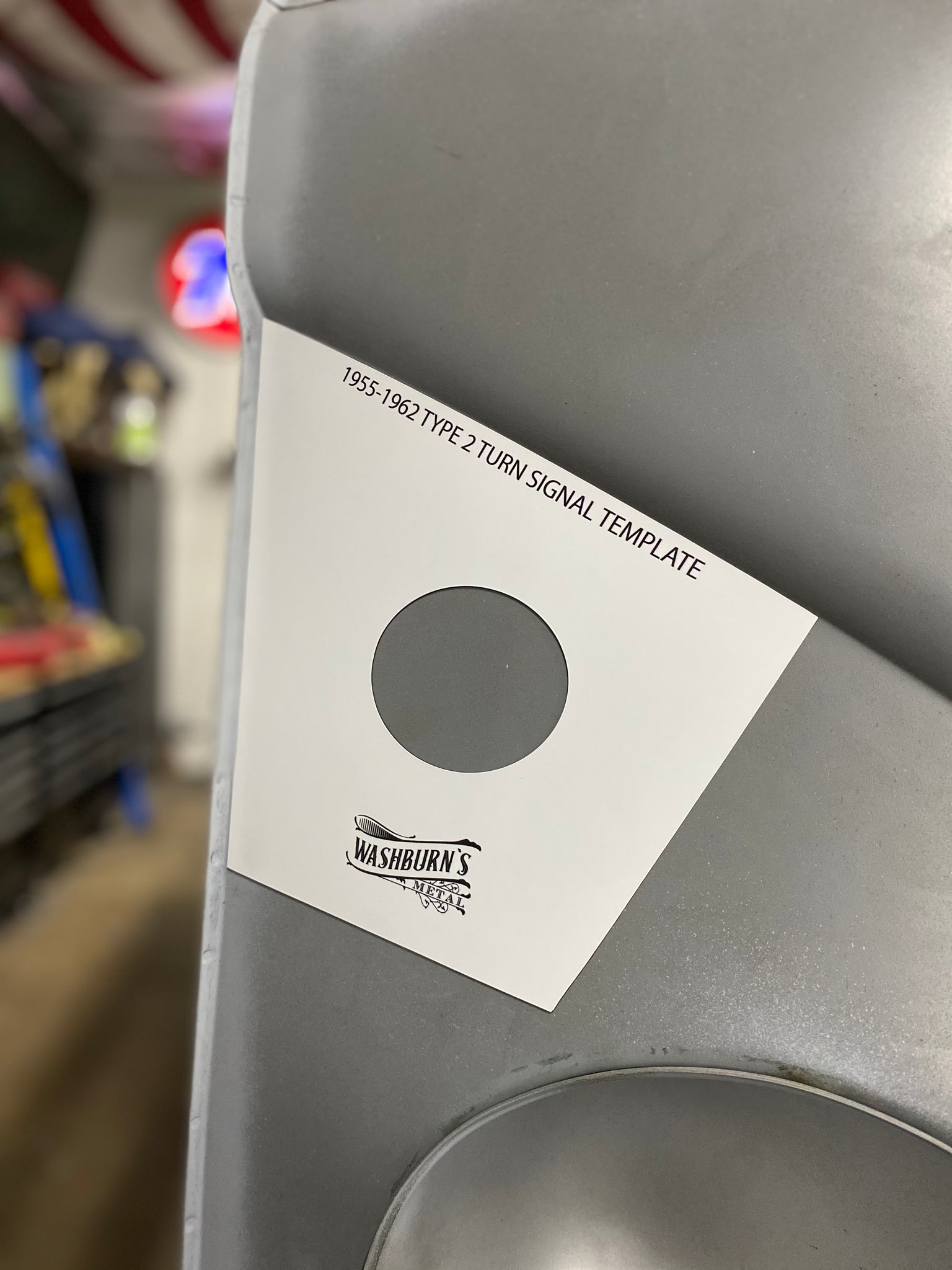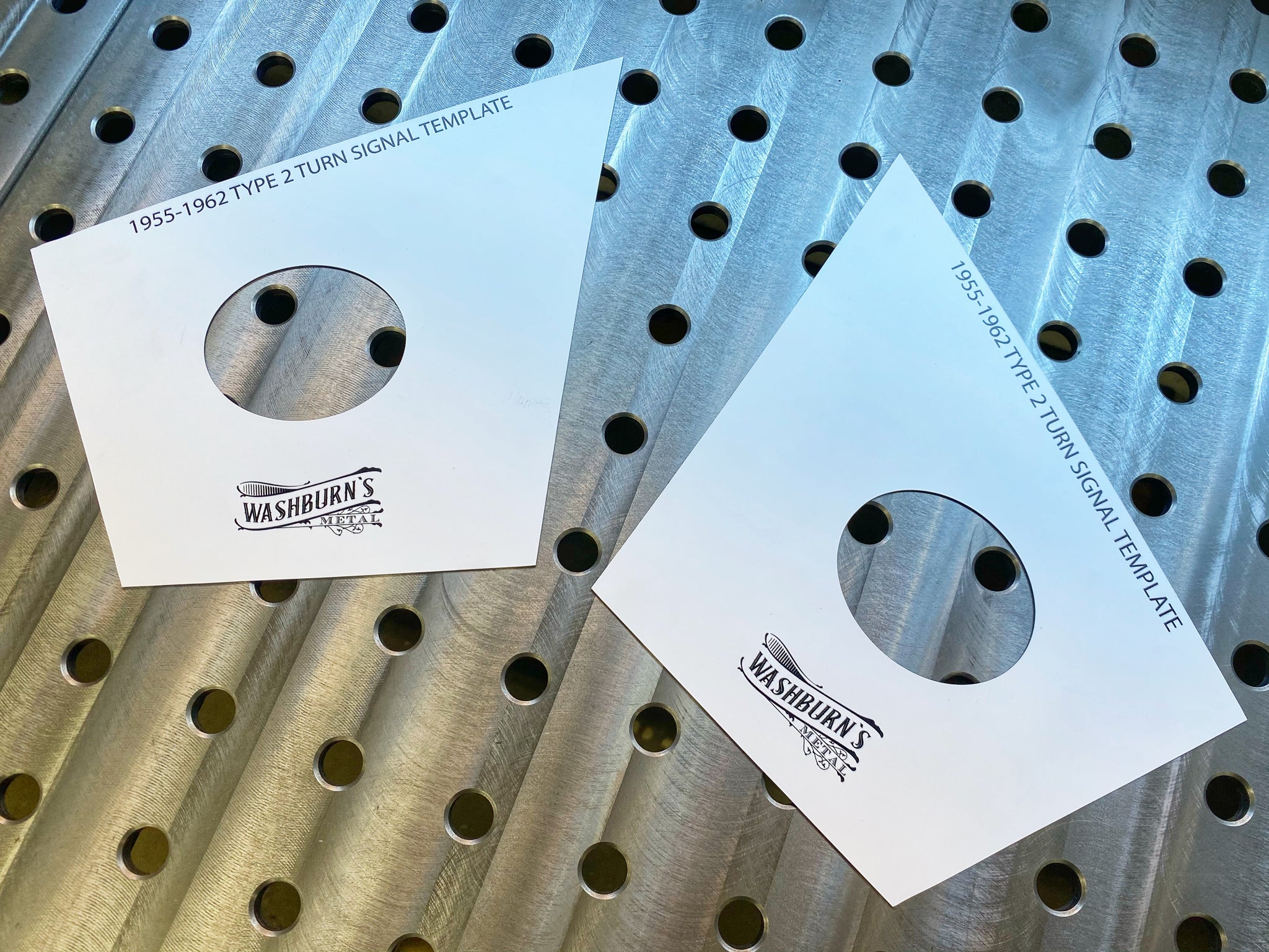 When buying an aftermarket front nose skin, often times the skin is sold with no turn signal cut outs. This is so the part can be sold to fit all years of split Bus. These magnetic templates makes the task of locating the turn signal positions for 1955-1962 US and1963 Euro Type 2's hassle free. Included in this kit are CNC precision cut, heavy duty, left and right side magnetic templates. Simply place each template into the upper corner of the nose against the outer flange and body line. After locating the position, scribe/mark the location, then start cutting with confidence.